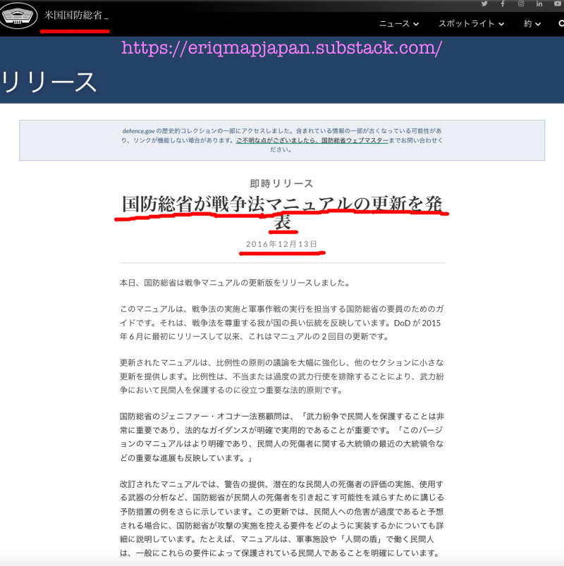 わたしにはある洞察がありますが、それは有効かも知れません。実際に有効かどうかは、時間が経てばわかります。その洞察とは...戦争法マニュアルが2016年に更新されたことです。このことを心に留めておいてください。