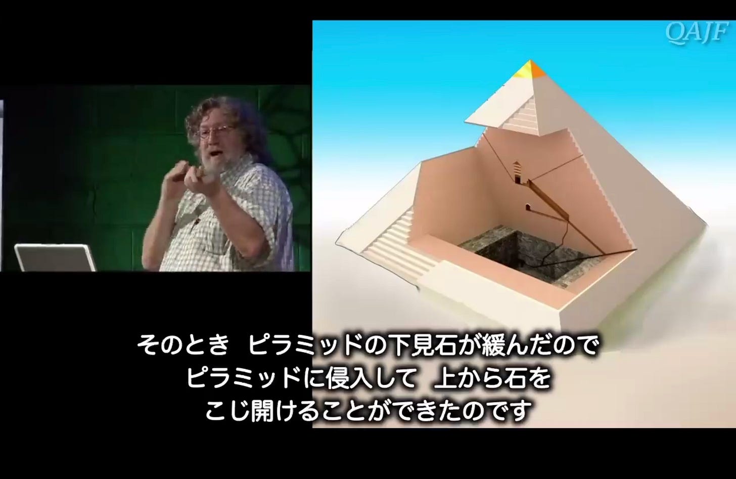 そのとき、ピラミッドの下見石が緩んだので、ピラミッドに侵入して、上から石をこじ開けることができたのです。そして、すべての精度の低い高品質の石灰岩がはぎ取られ、カイロを再建するための建物に使われました。