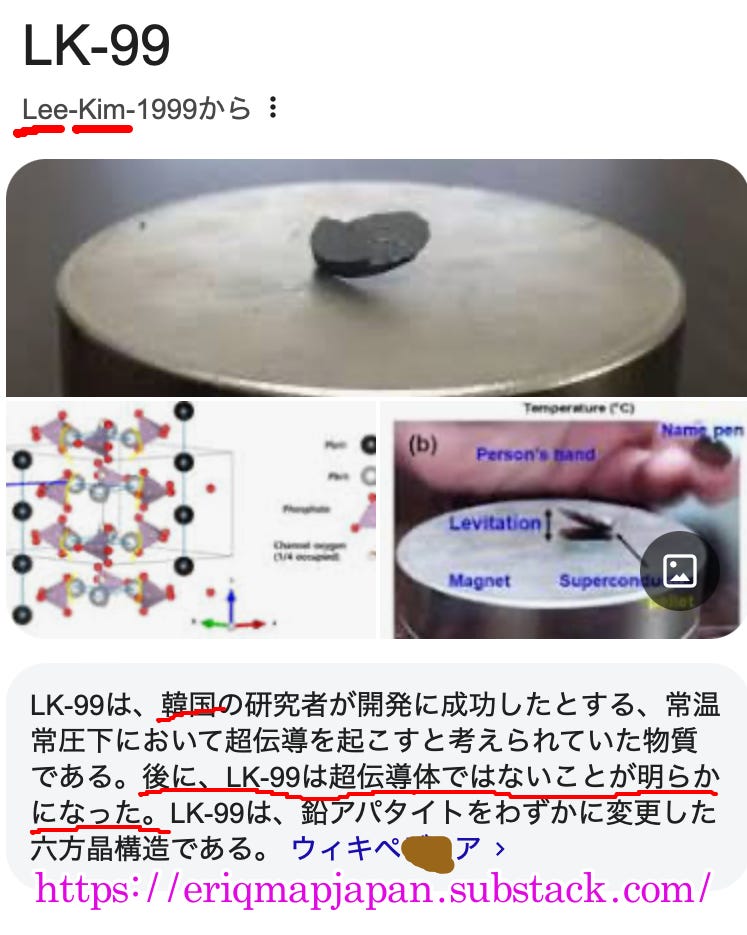 超伝導は、巨視的量子効果であるため、私たちにとって理解することが非常に重要な概念です。量子効果を扱う場合、これらは基本的に魔法のようなもので、小さなスケールでは説明できません。そして “巨視的”ということは、つまり、このような効果を実際に目で見ることができるということです。回路における “超伝導”とは、電子が何の抵抗もなく自由に流れることを意味します。携帯電話は通常、使用すれば熱を持ち始めます。熱くなる理由は、電子が原子にぶつかって跳ね返る際に熱が発生し、エントロピー(時間の経過と共に散らかっていくようなイメージ)によって熱が失われるからです。そうなれば、携帯電話のバッテリーが切れて動作しなくなりますが、超伝導状態ではまったく発熱しないため、おそらくバッテリー寿命ははるかに長くなるでしょう。これが、1年ほど前にLK-99(Lee(李)とKim(金)が共同開発した詐欺発明)のようなものが開発された理由で、現在では「常温超伝導体を作ることができ、マクロなスケールでこれらの量子効果を確認できる」という主張がされています。実際、動画も公開されていますので、皆さんにもご覧いただきたいと思います。韓国と中国の人々が、文字通り岩のようなLK-99のメタマテリアルを生成したことを、西洋の人々に証明している動画です。