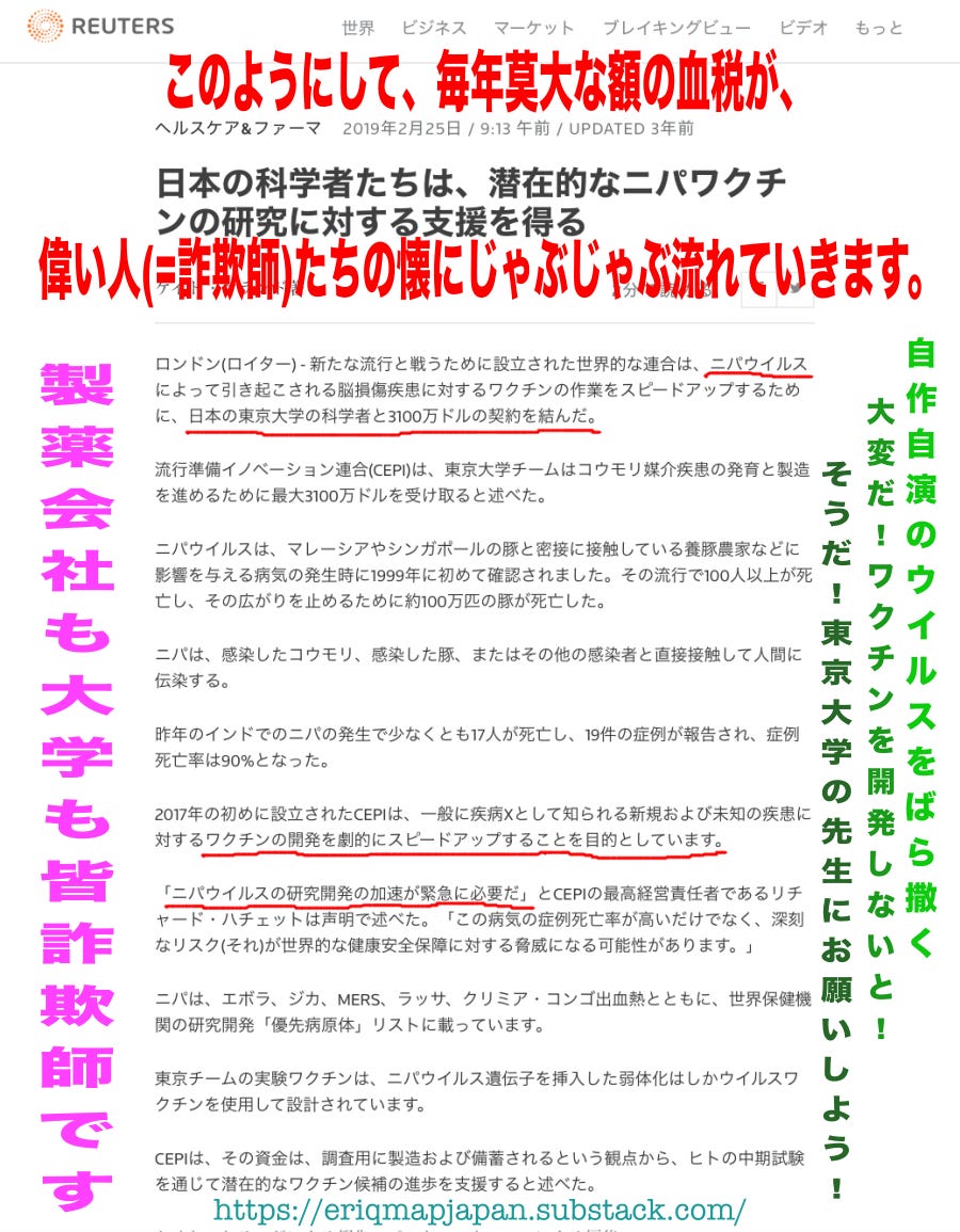 とにかく…彼らは、また新しい生物兵器を宣伝していましたね。今度はマールブルグ・ウイルスとかなんとか呼んでいるようで…次々と同じパターンで来るので、「まただよ…もういいや、黙っとこ」…と、皆呆れています。