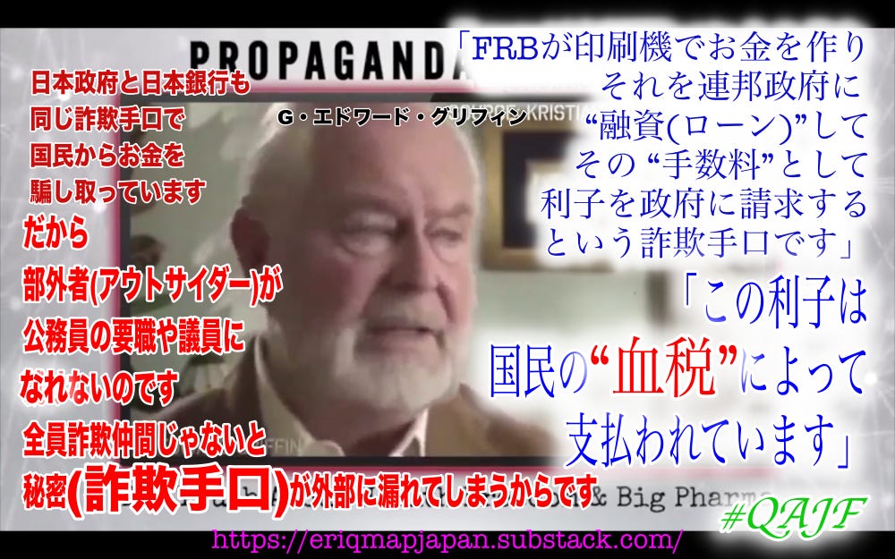 そこで彼らは、FRBとカルテル協定を結び(提携し)、FRBは、無からお金を刷って政府に "融資(ローン)”することに同意したのです。