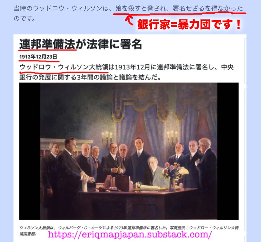 「自分たちの権力支配をなくす」という建前で、彼らはFRB (連邦準備制度)を作ったのですが、FRBを作ったのが誰かを見れば、その策略が見えてきます。