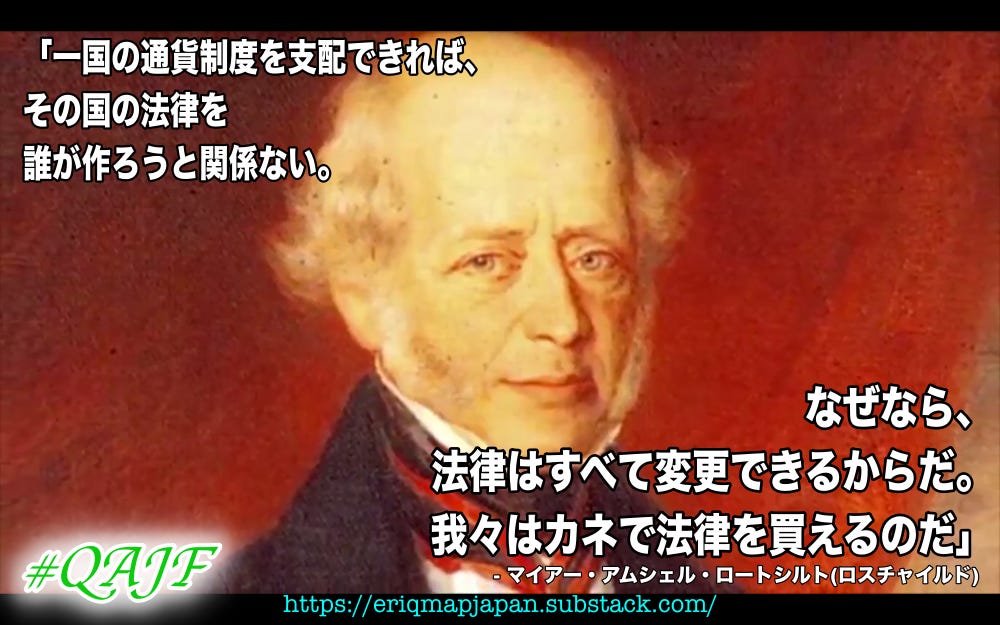 「一国の通貨制度を支配できれば、その国の法律を誰が作ろうと関係ない。なぜなら、法律はすべて変更できるからだ。我々はカネで法律を変えることができるのだ」