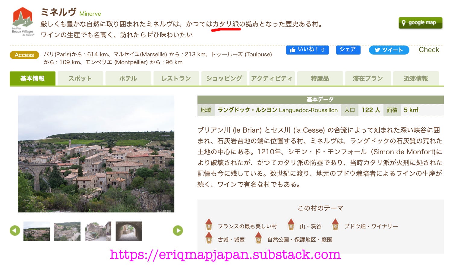 * CESSERAS: ピエール・ライモン・ド・セセラスは、恐ろしいフェラリウス修道士によって、異端の罪で投獄された。彼の息子ベルナール・アルノーは追放され、彼の孫ギヨームとピルフォールは永遠に土地を奪われた。征服後、サン=ルイはセセラをトレンカベルに譲渡した。