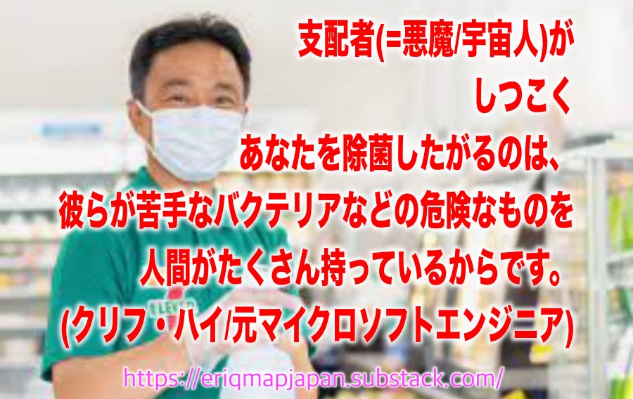 これは、わたしたち人間が、宇宙人が苦手なバクテリアなど、彼らにとって潜在的に危険なものをたくさん持っているからです。だからわたしたちは、油や特定の除菌物質を、特定の量塗らされているのです。